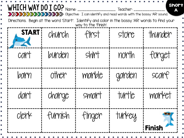 focus on phonics! Students read the passage and highlight the specific phonics content – in this case the AR sound. Then the students sort the words in a way they seem fits. The second page of the passage is to help extend the questioning and comprehension of the passage with a bit of creative writing!