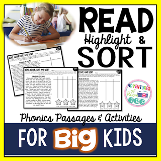 Finally, in your freebie is a shark themed read, highlight & sort passage. These passages were designed for 2nd/3rd grade students who need longer more rigorous passages but still need to